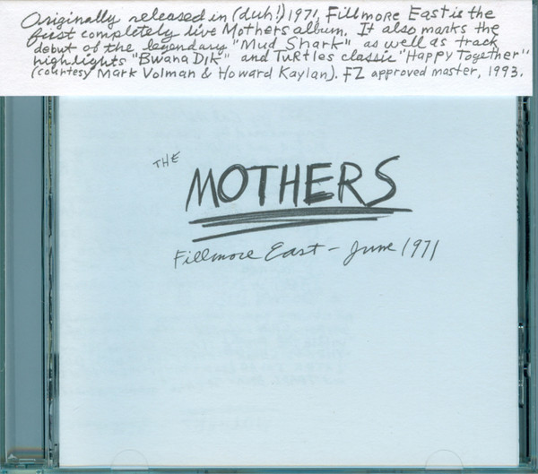Produto: CD Frank Zappa | Fillmore East June 1971 First Press AAD USA (1971 Press 1990) /NM (Near Mint) de Época R$189